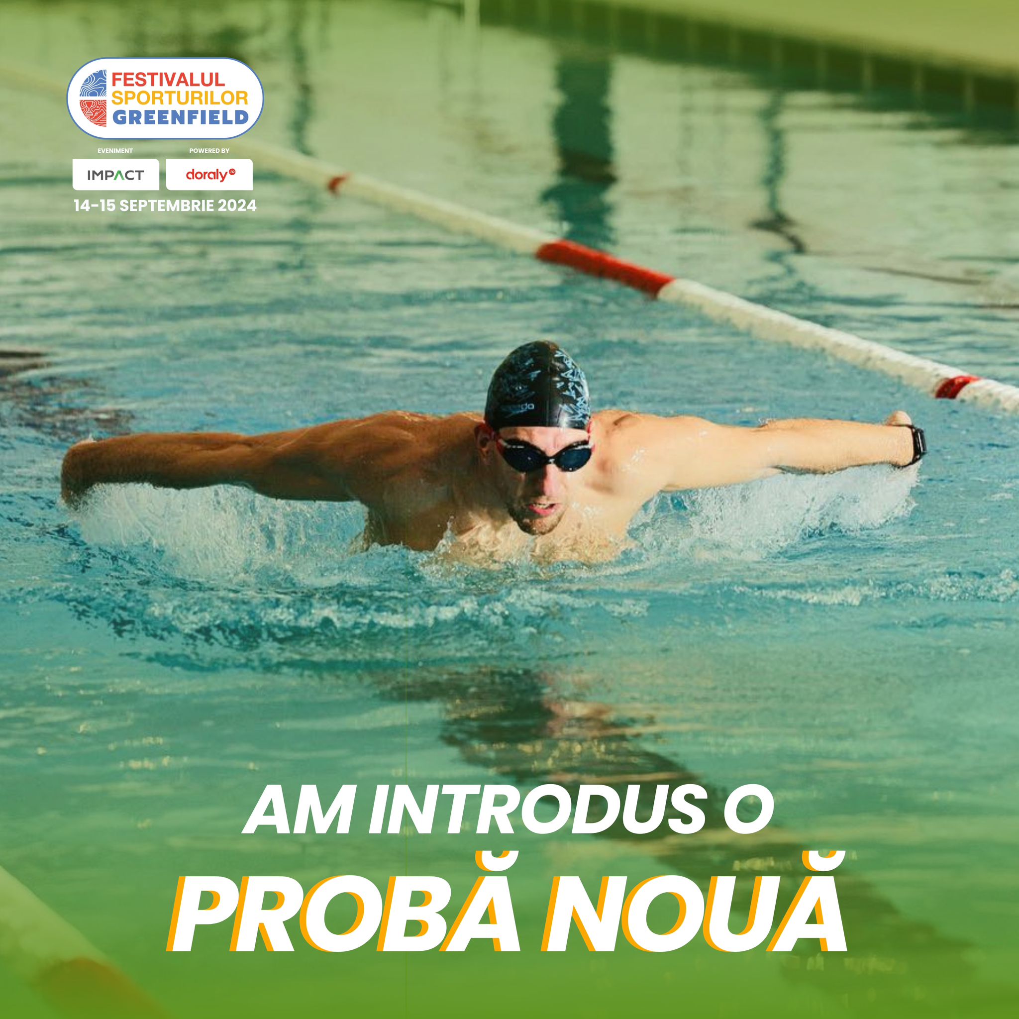 Am introdus o probă de Înot - stil liber (freesyle), de 50 de metri, organizată împreună cu partenerul nostru Renovatio Sport Club, care se va desfășura în bazinul din incinta Weelness Club by Greenfield.